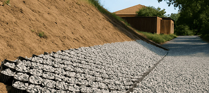 В Краснодарском крае для частной усадьбы использовали объёмную георешётку при строительстве съезда и благоустройстве участка с уклоном. Геоматериал укрепил склон, стабилизировал щебёночную подушку и обеспечил надёжность даже при обильных осадках.